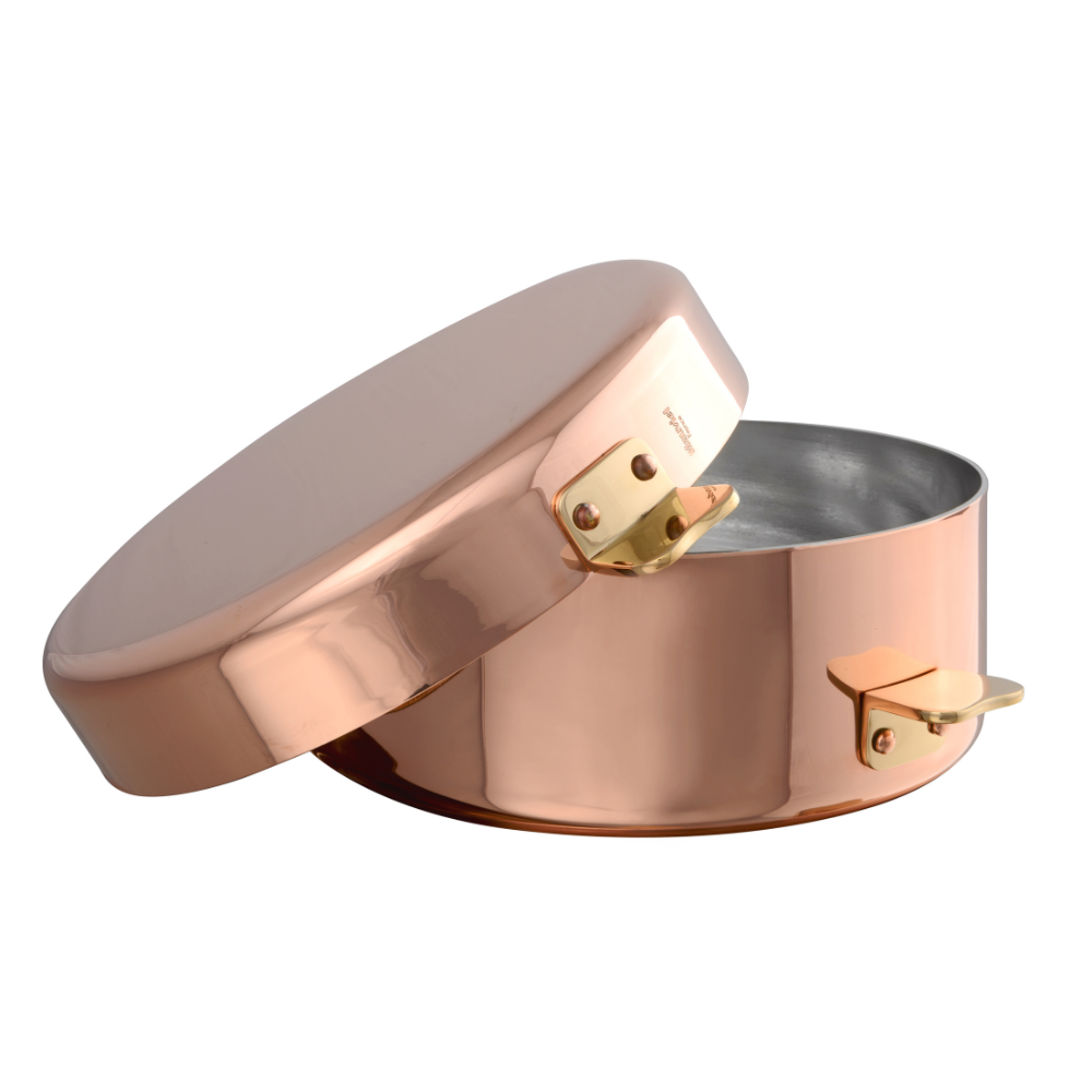 • Copper with tinned interior. Tinned copper, perfect for gentle and regular cooking, renews the pleasure of cooking