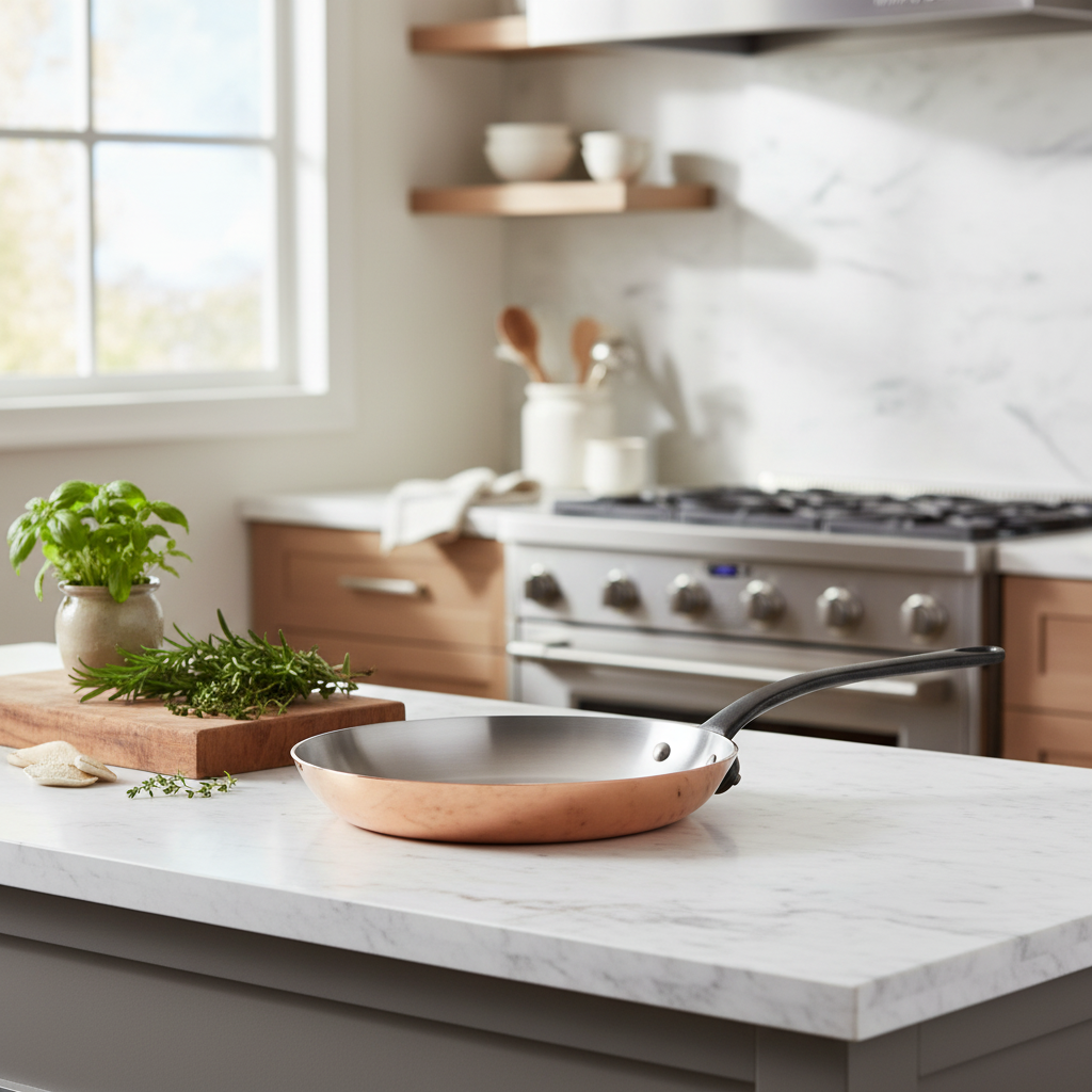 - Copper exterior offers superior control, heats evenly and much faster than other metals; stainless steel interior preserves the taste and nutritional qualities of foods and is easy to clean.