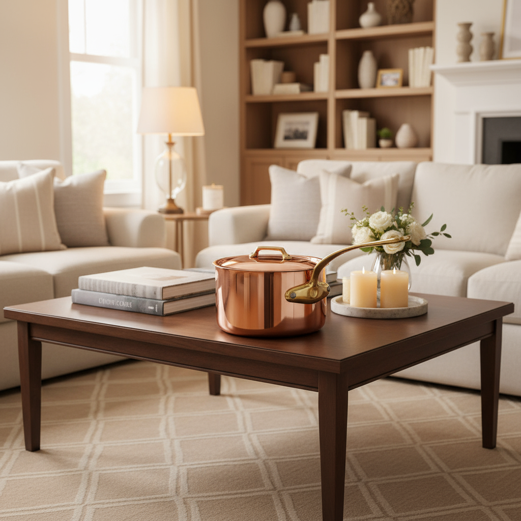 • Bilaminated copper stainless steel. Polished copper outside 90% - Stainless steel inside 10%.