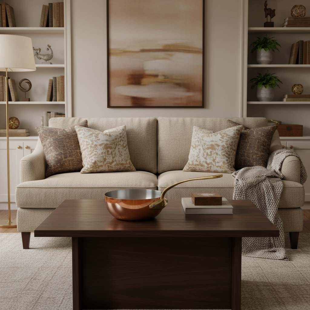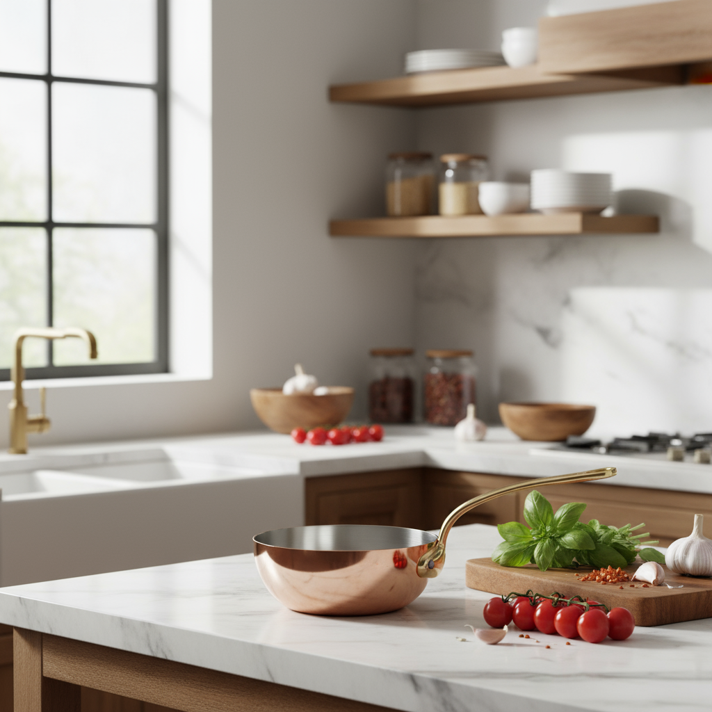 • Brass Handles. Are traditional and substantial. Offer a very comfortable grip and good balance. Pouring rims on every piece