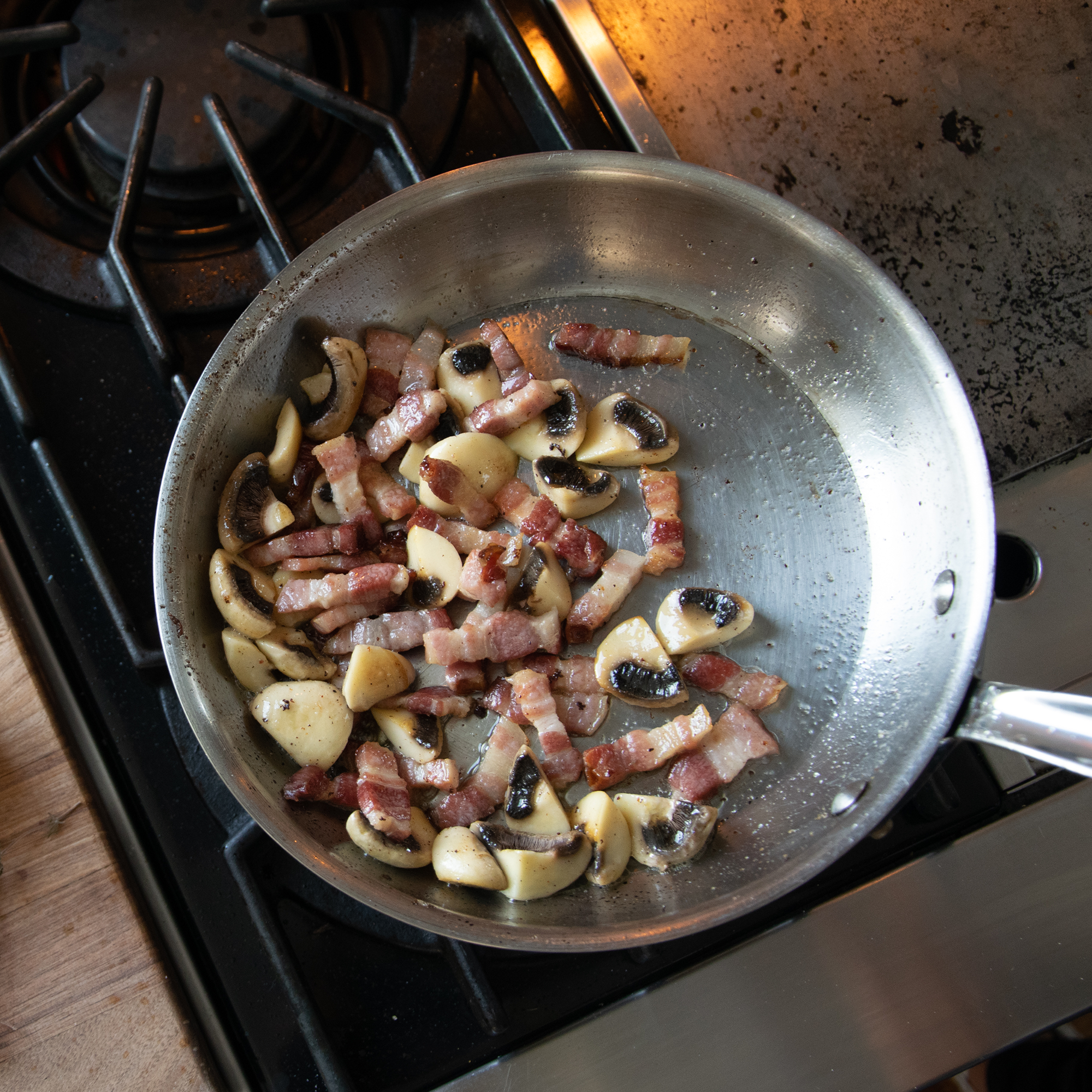 - In the same pan, sauté the mushrooms until browned. Set aside.
