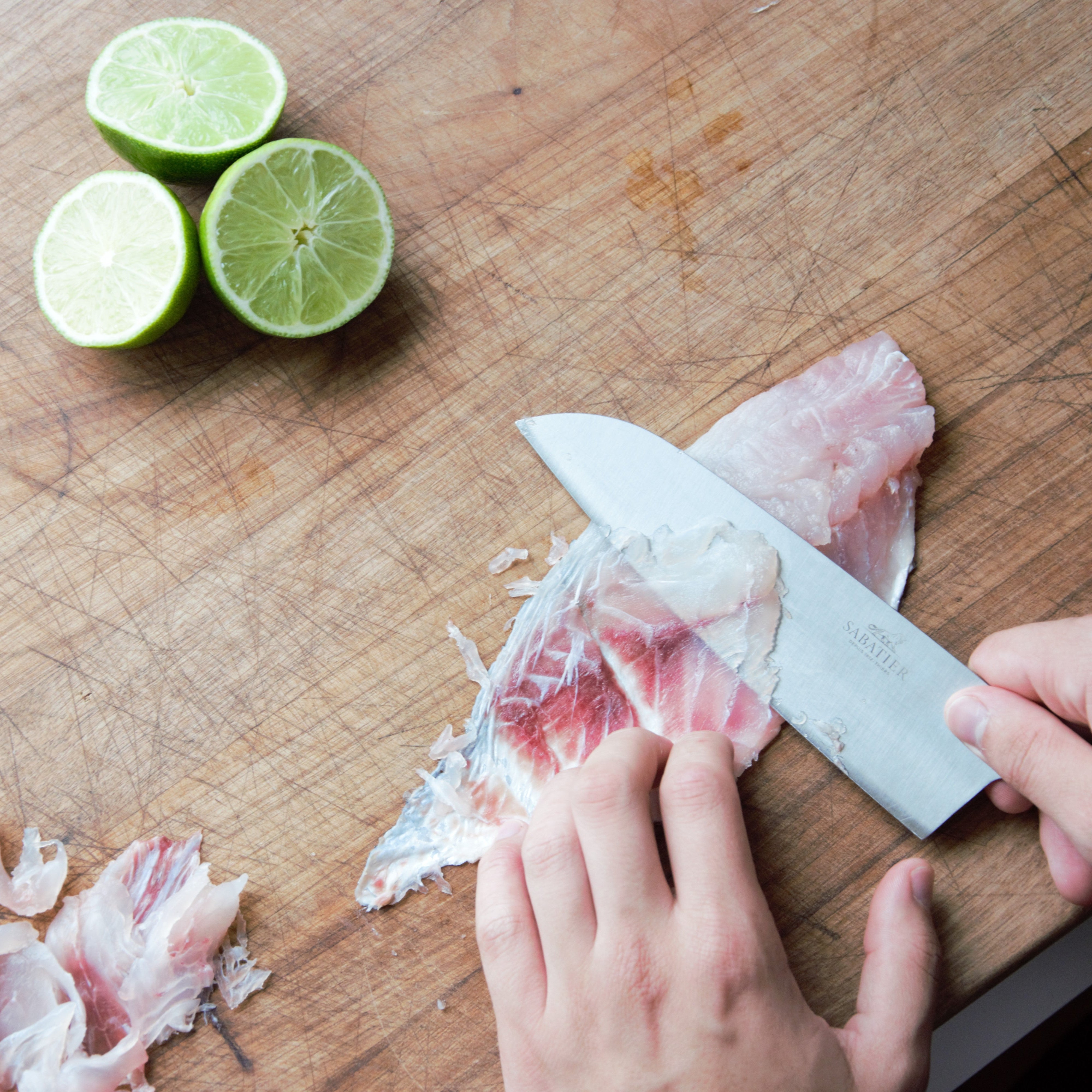 -Slice the sea bream into very thin slices.